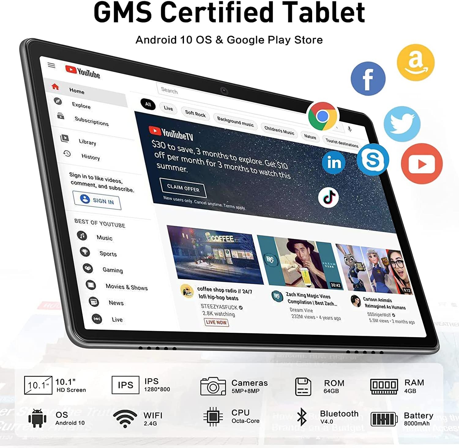 • MORE SUPPORT : Our tablet is sold in a multi-accessory combination, like tablet cover, screen protection film, capacitive pen ect. so that customers can use it anywhere. The MEBERRY tablet is equipped with the Android 10.0 system. With GOOGLE GMS certification, we can freely download any APP in the GOOGLE store, games, music, beauty, email, weather, social apps and more: Netflix support