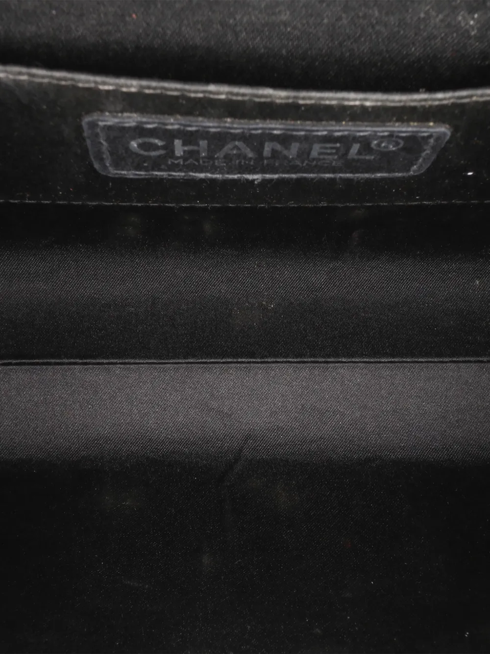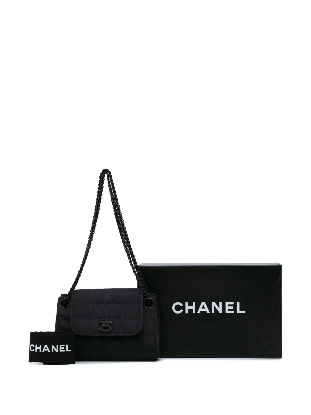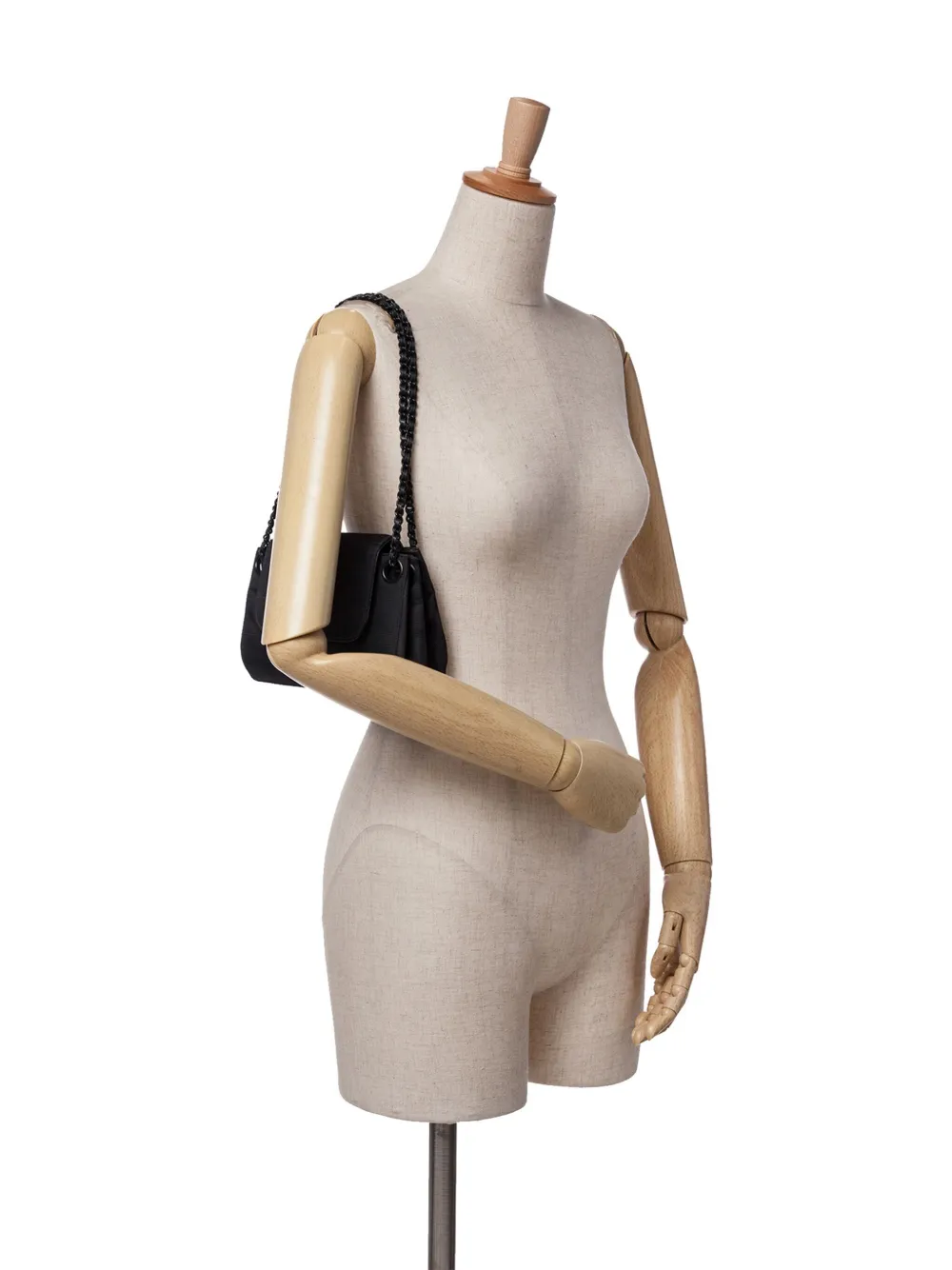 This shoulder bag features a nylon body, leather woven chain link straps, a top flap with interlocking Cs and a twist lock closure, and an interior slip pocket. Black. Serial Number: 7492792. Inclusions: dust bag, box. Condition: GOOD. This previously owned and used item is in good condition with minimal signs of use. This may include fading of material or plating and scratches. Please refer to the photos on this product page for a detailed view of the item, including any damages declared.