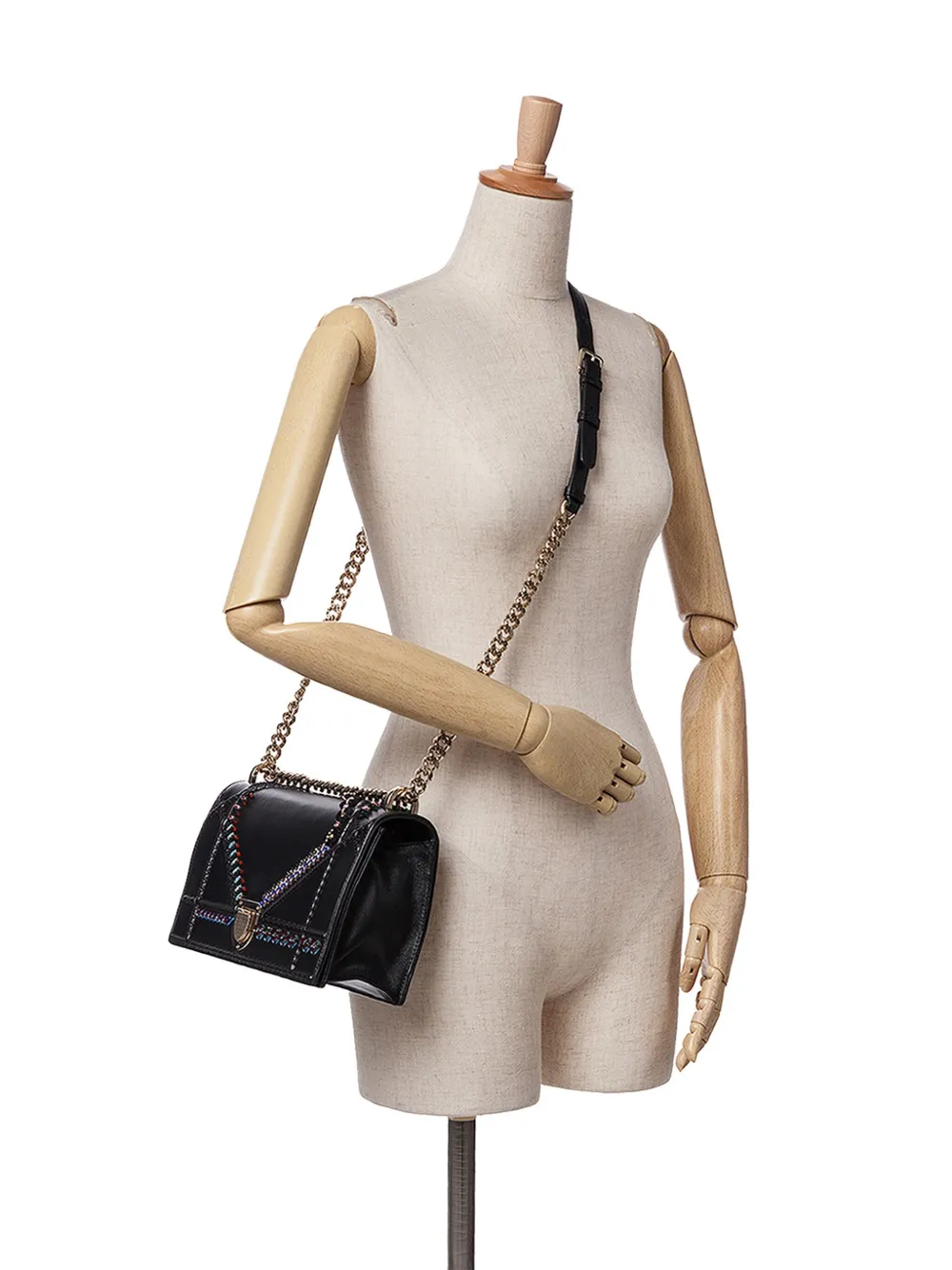 2016 Medium Calfskin Crystal Embroidered Diorama Flap crossbody bag