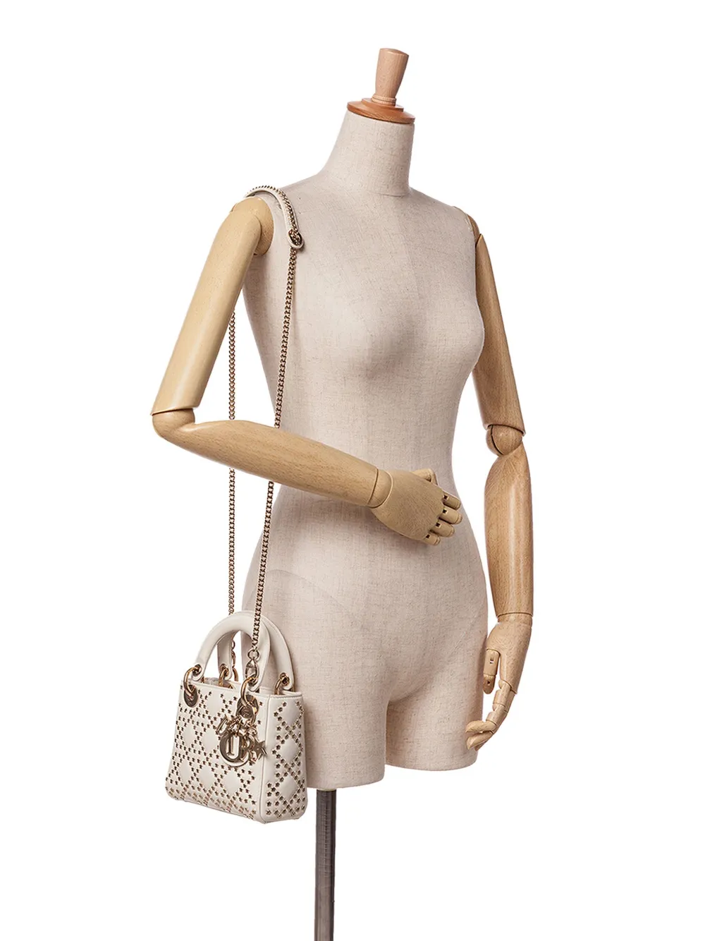 2022 Mini Lambskin Cannage Lucky Star Studded Lady Dior satchel