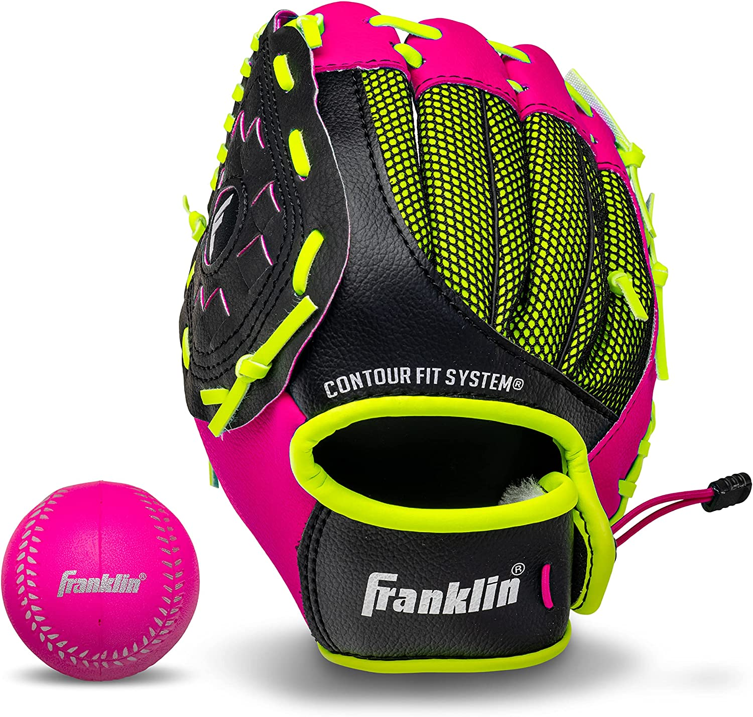 Franklin Sports Teeball Glove - Left and Right Handed Youth Fielding Glove - Neo-Grip - Synthetic Leather Baseball Glove - 9.0 Inch - Ready To Play Glove with Ball