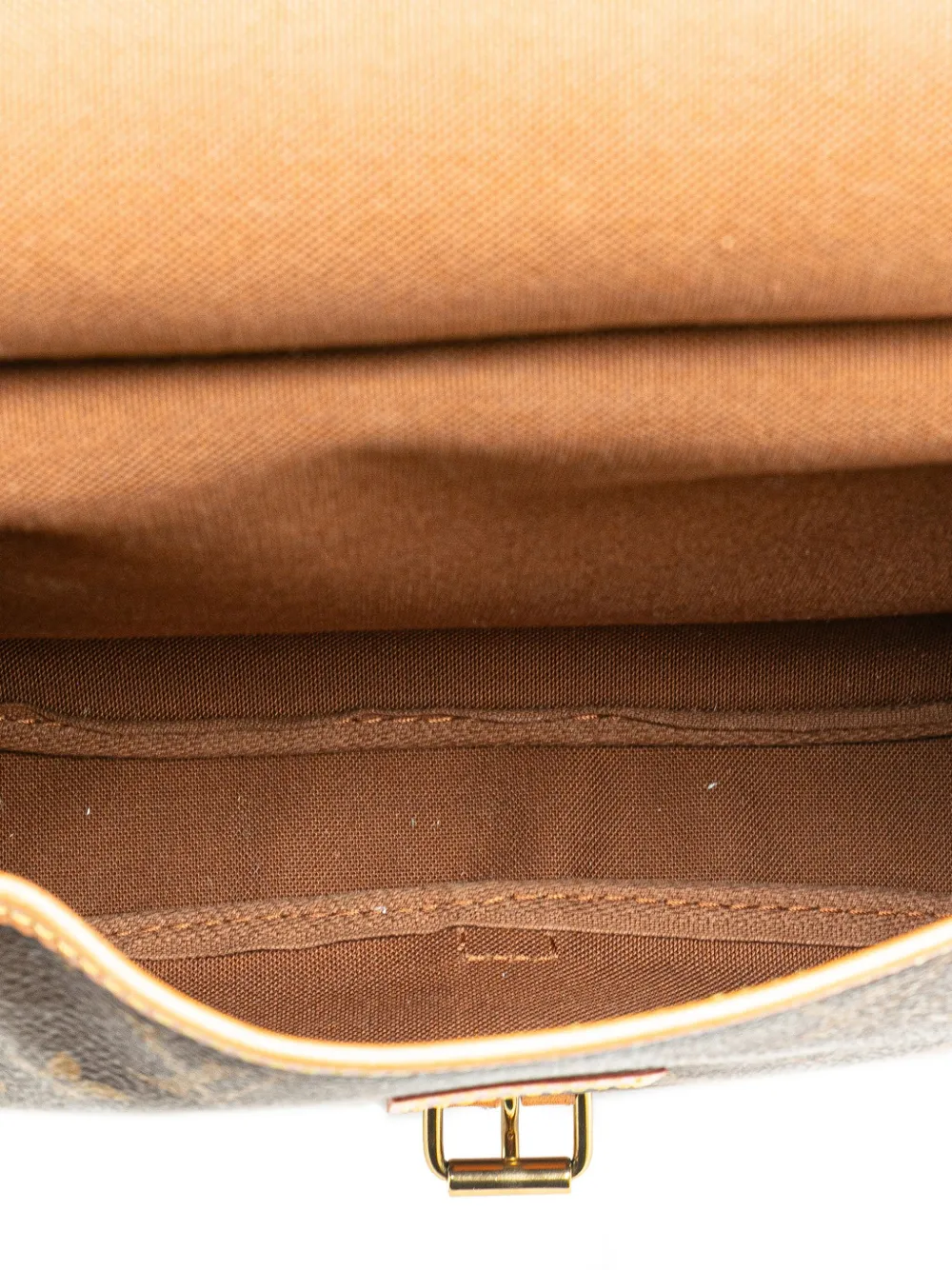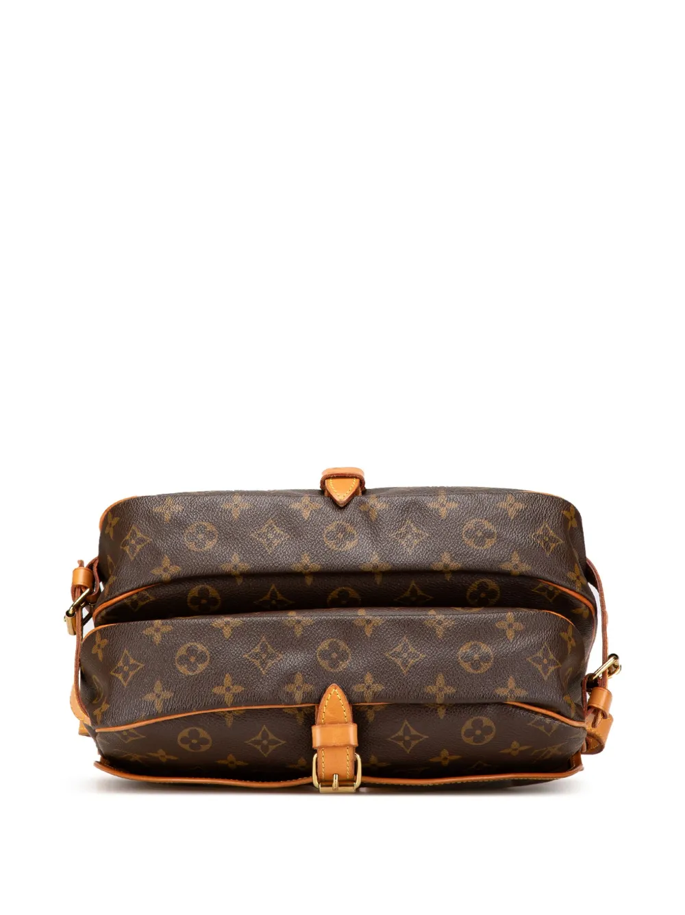 double open compartments with front flaps and belt buckle closures