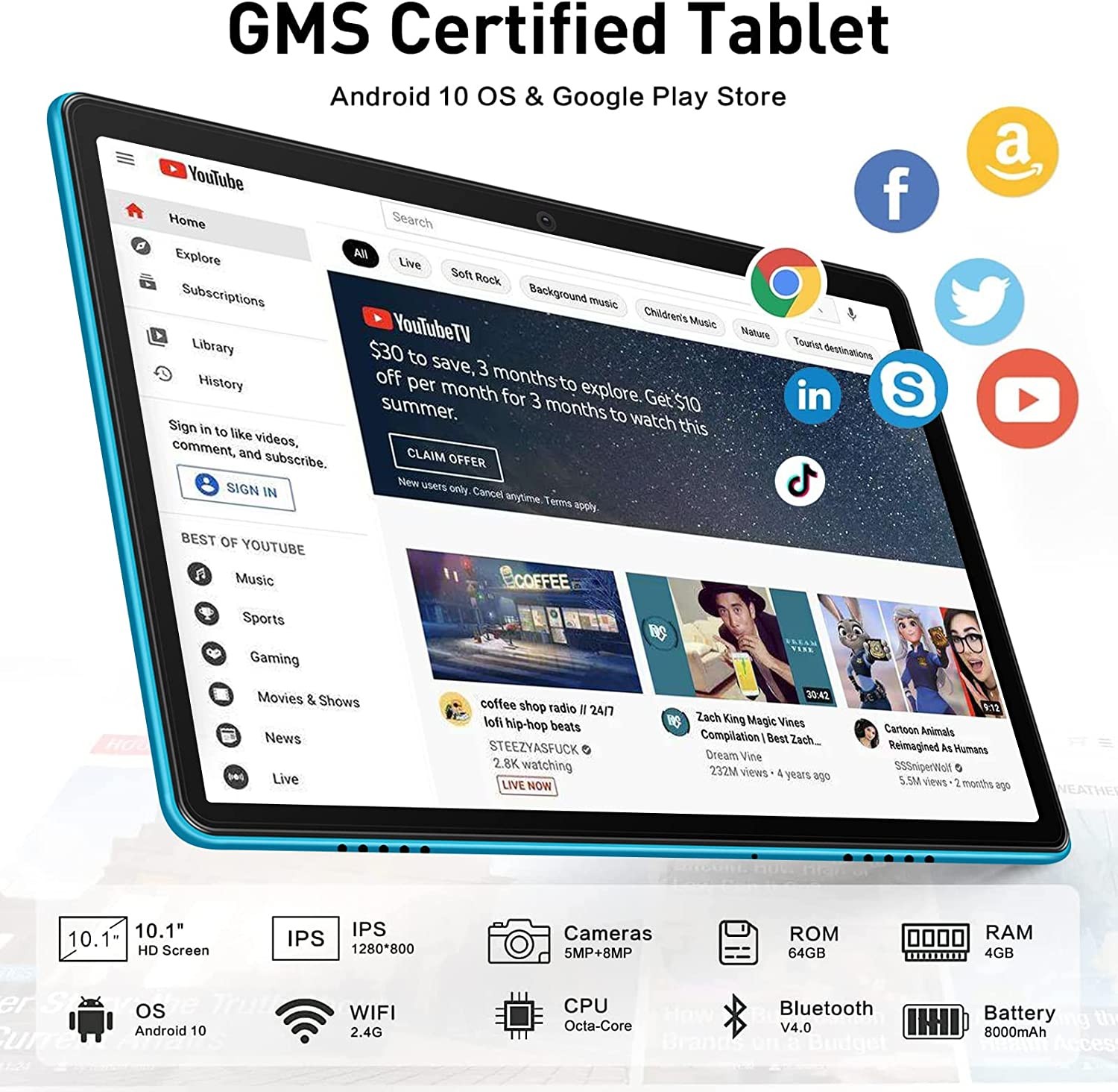 MEBERRY Android 10.0 Tablet : 10in Ultra-Fast 4GB/RAM,64GB/ROM Tablets-8000mAh Battery-WiFi Support - Bluetooth Keyboard | Mouse | M7 Tablet Cover and More Include - Blue