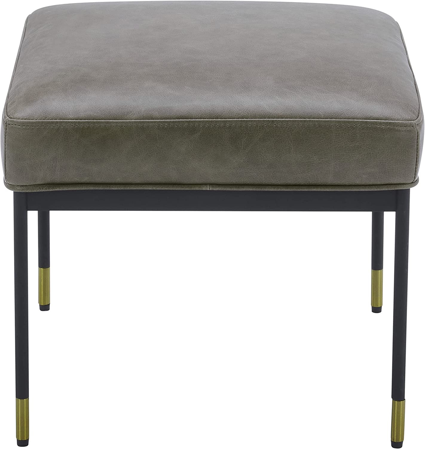 Studded Modern Leather Ottoman with Metal Legs, 16.9" Tall, Grey