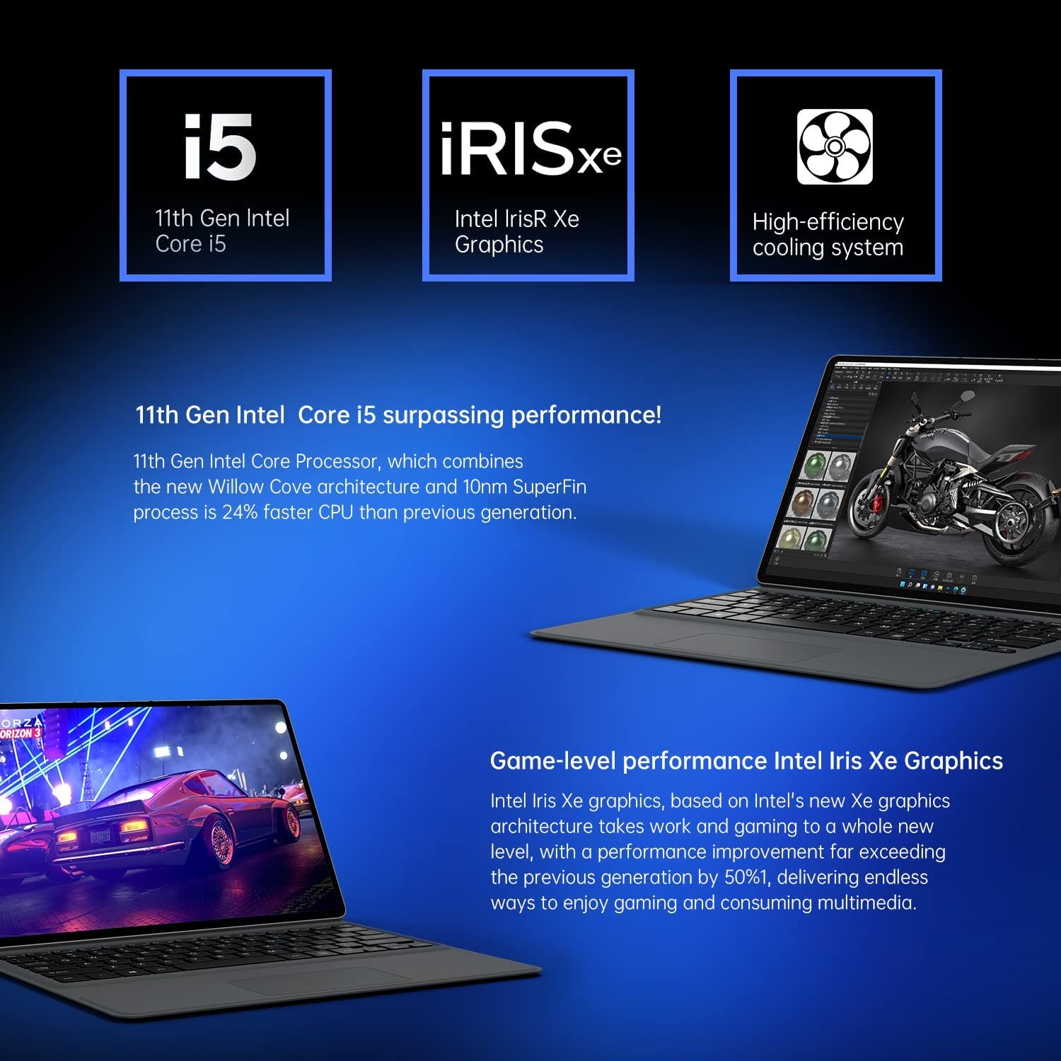 • Upgraded productivity,Impressive Performance-The Alldocube iWork GT is a 2-in-1 laptop that runs Windows 11 and uses the 11th Gen Intel Core Processor i5-1135G7,quad core CPU, and new Intel Iris Xegraphics, allowing you to speed through office task and blast through applications.